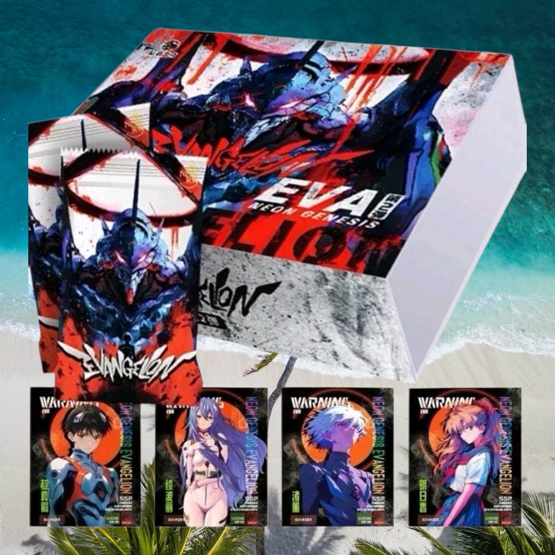Step into the world of Neon Genesis Evangelion with this stunning trading card box featuring bold artwork and premium character cards. Perfect for anime lovers and collectors looking for unique chase hits.