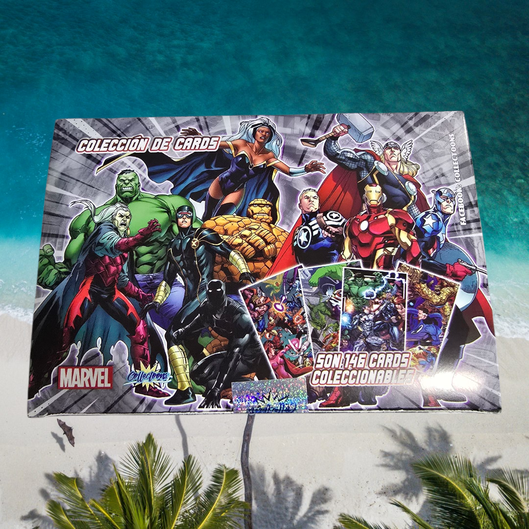 Enter the Marvel Universe with this official Marvel Collectible Cards Box, featuring a full collection of 146 cards showcasing legendary heroes like Iron Man, Thor, Black Panther, Storm, Captain America, Hulk, and many more.